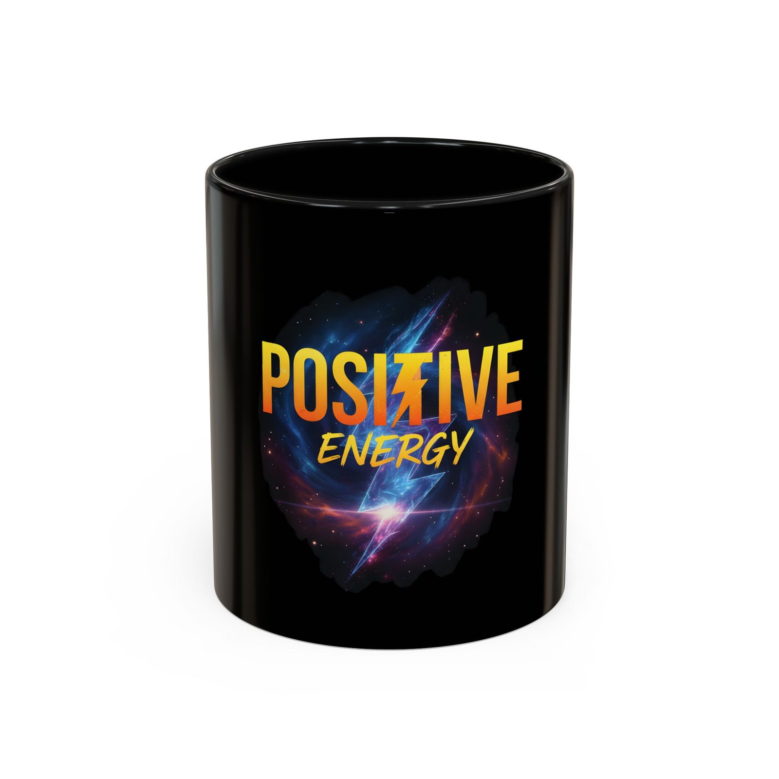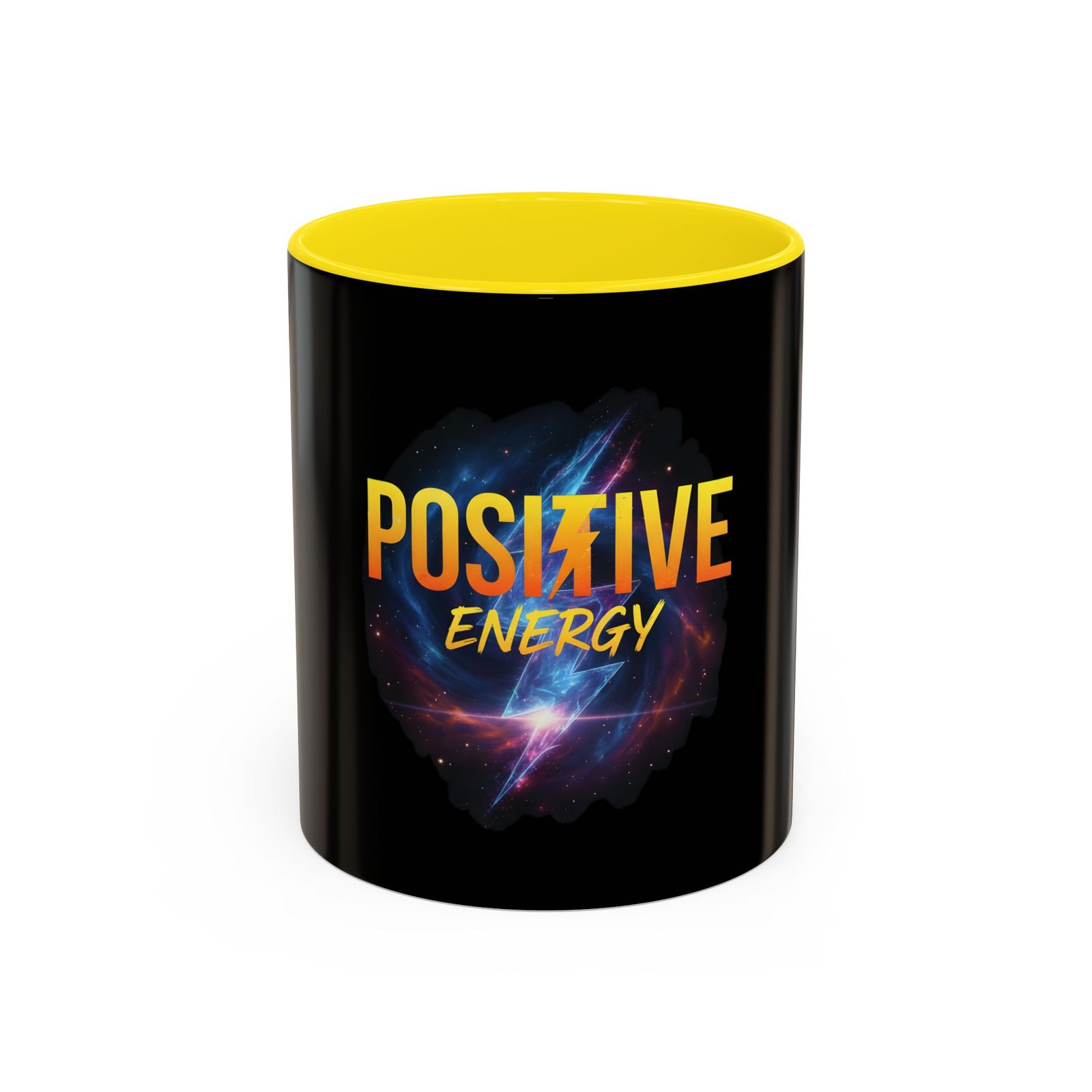 Sip your morning momentum from a mug that looks like it caught a sunrise in space. The glossy black ceramic makes the neon-yellow “POSITIVE ENERGY” pop against a swirling galaxy of purples and blues, turning a simple coffee break into a small, intentional ritual. Comfortable C-shaped handle and vibrant interior color options add a personalized touch. Durable enough for daily use — microwave- and dishwasher-safe — this mug holds either 11 or 15 ounces and stands up to regular routines while keeping the message clear: bring the energy.