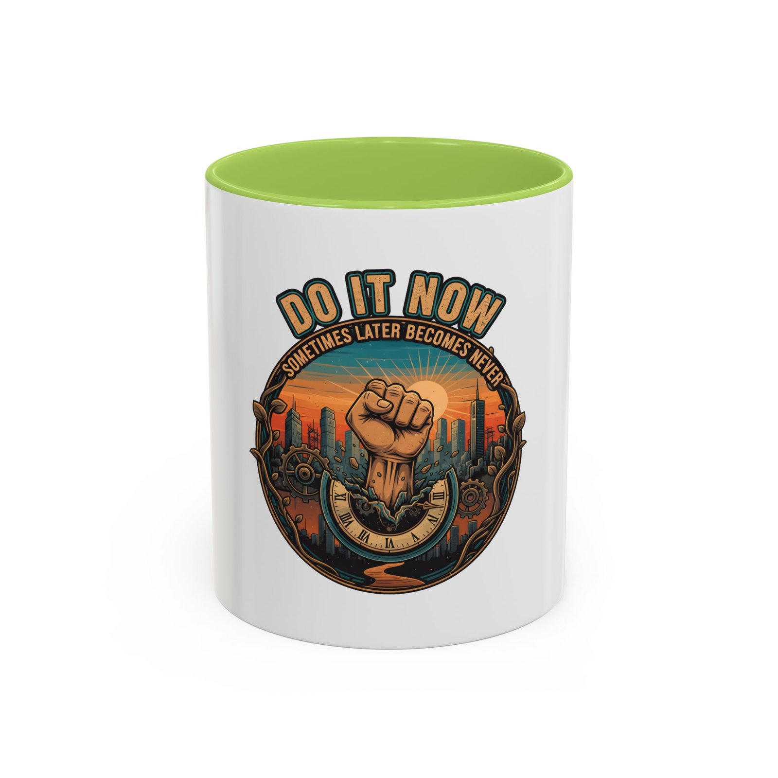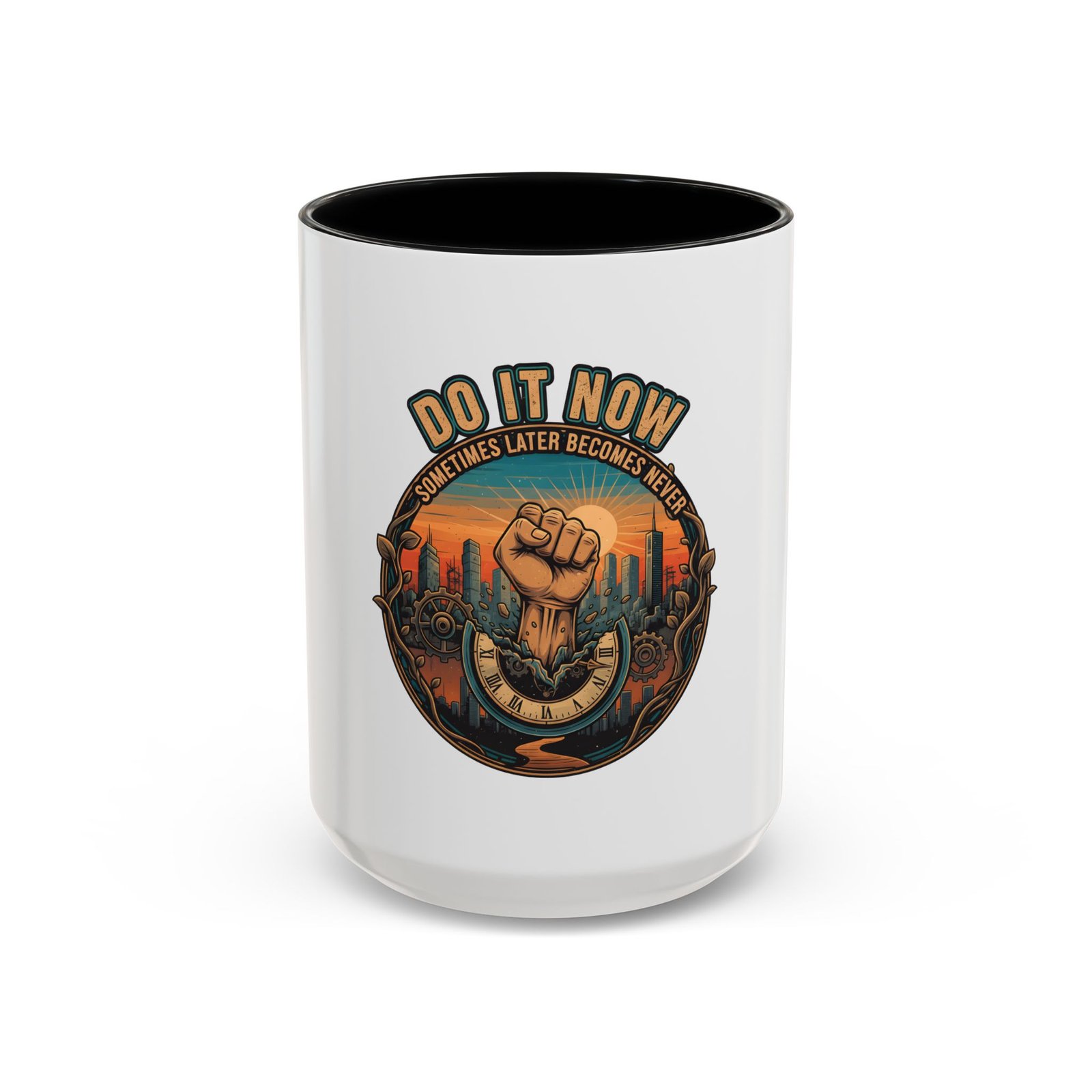 Do It Now Coffee Mug — Motivational “Do It Now; Sometimes Later Becomes Never” Accent Mug