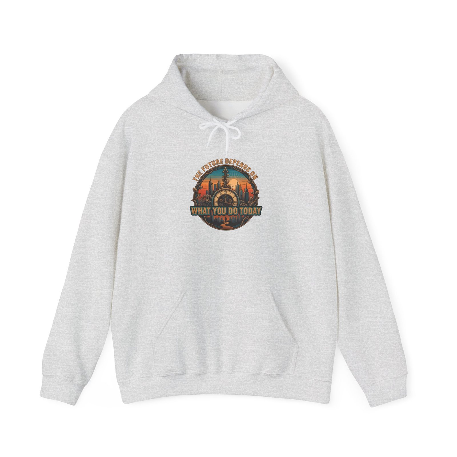 Hoodie — Vintage Sunrise ‘The Future Depends on What You Do Today’ Motivational Hooded Sweatshirt